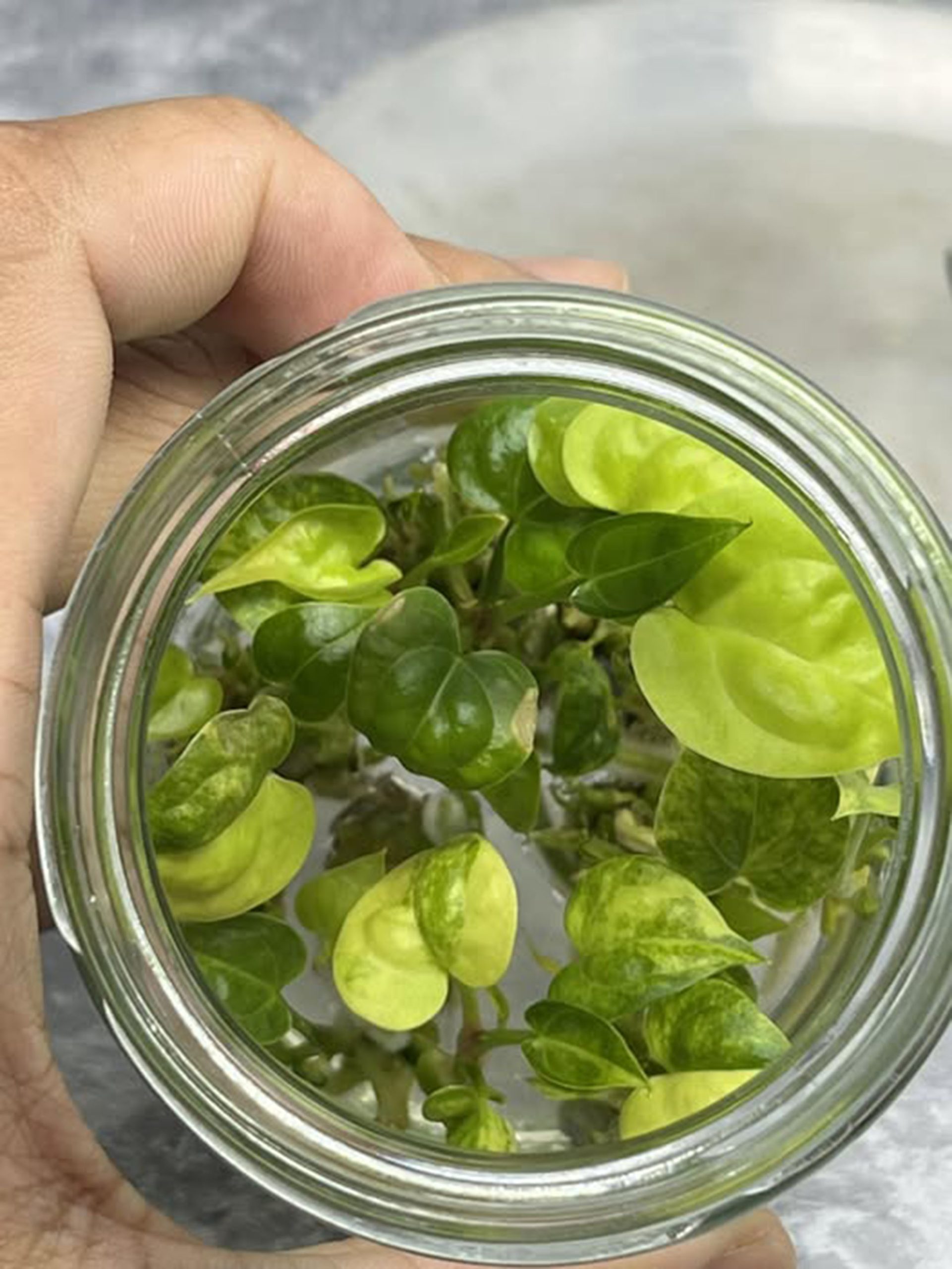 Anthurium clarinervium variegated Rare plant – Tissue Culture (1 Plant/Glass Bottle, Bag)